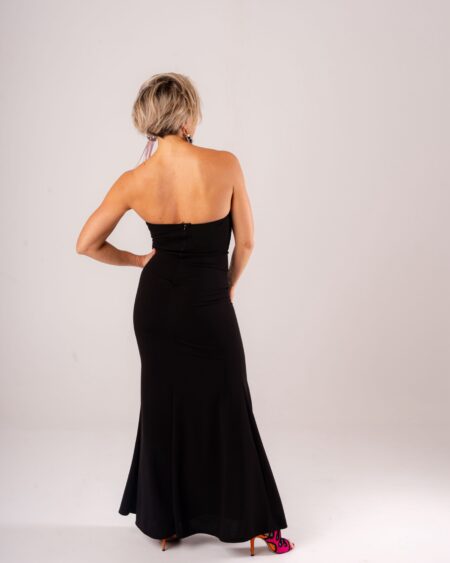 Elegante, femminile e intramontabile: questo vestito lungo nero senza spalline è il capo perfetto per chi desidera un look sofisticato e di grande impatto.