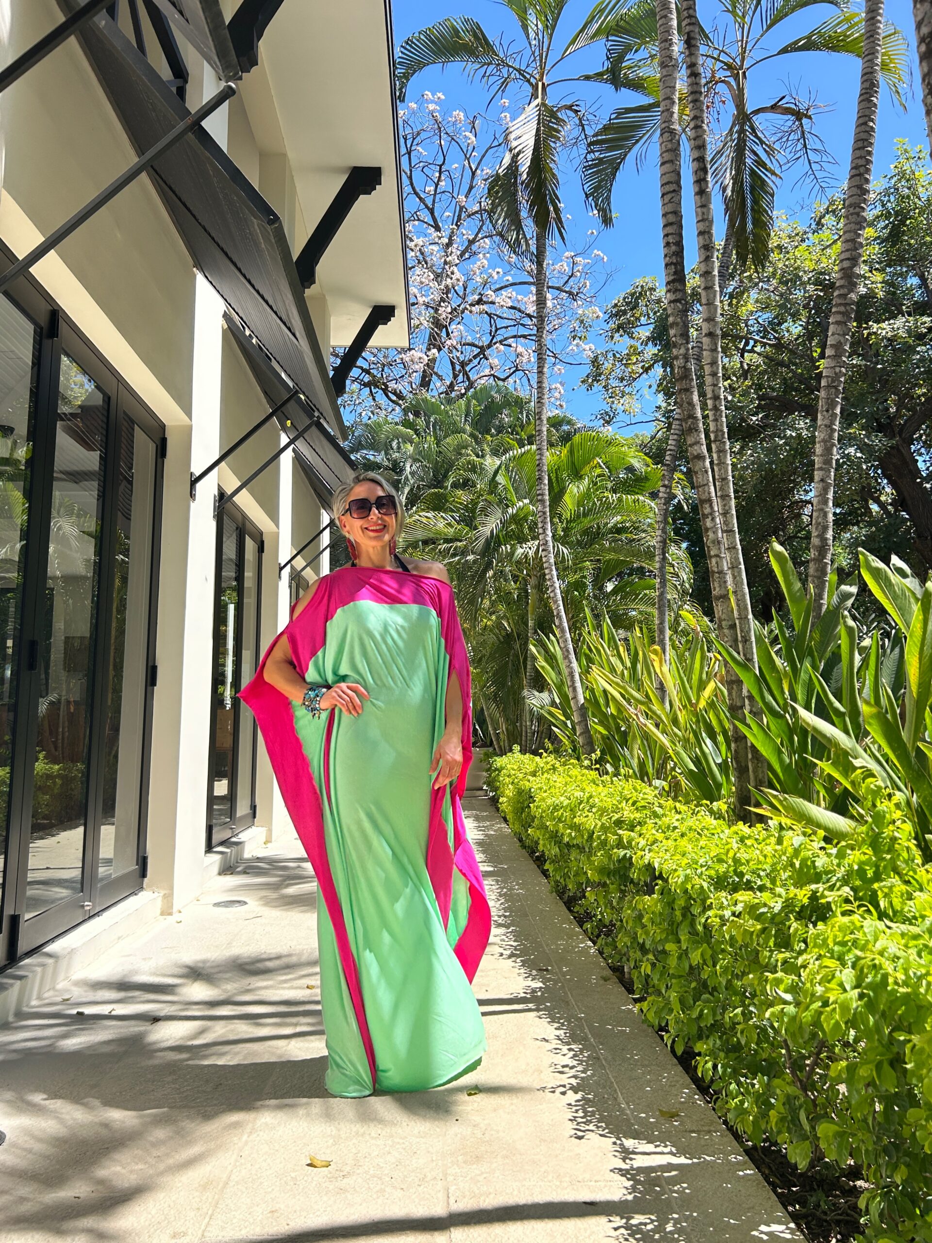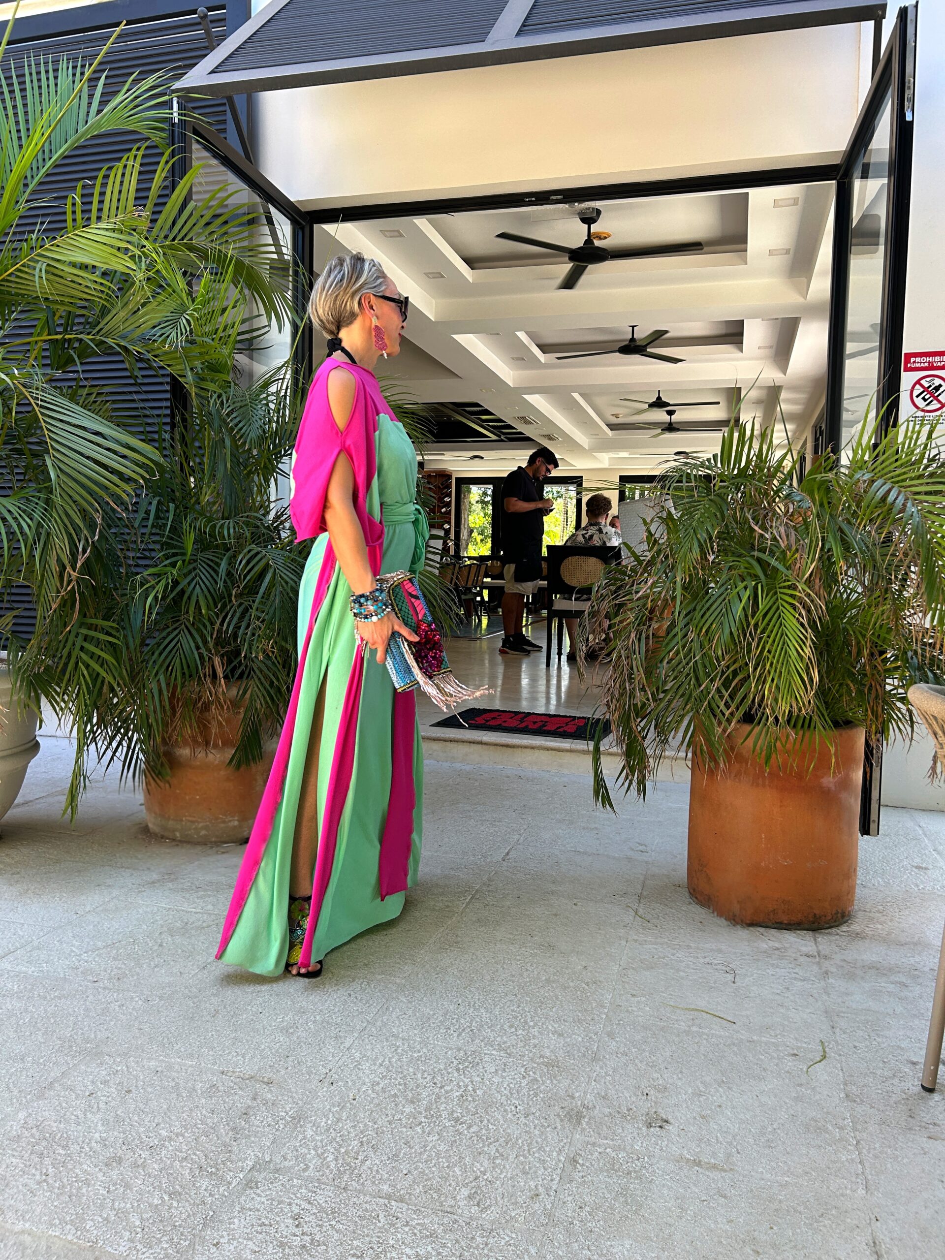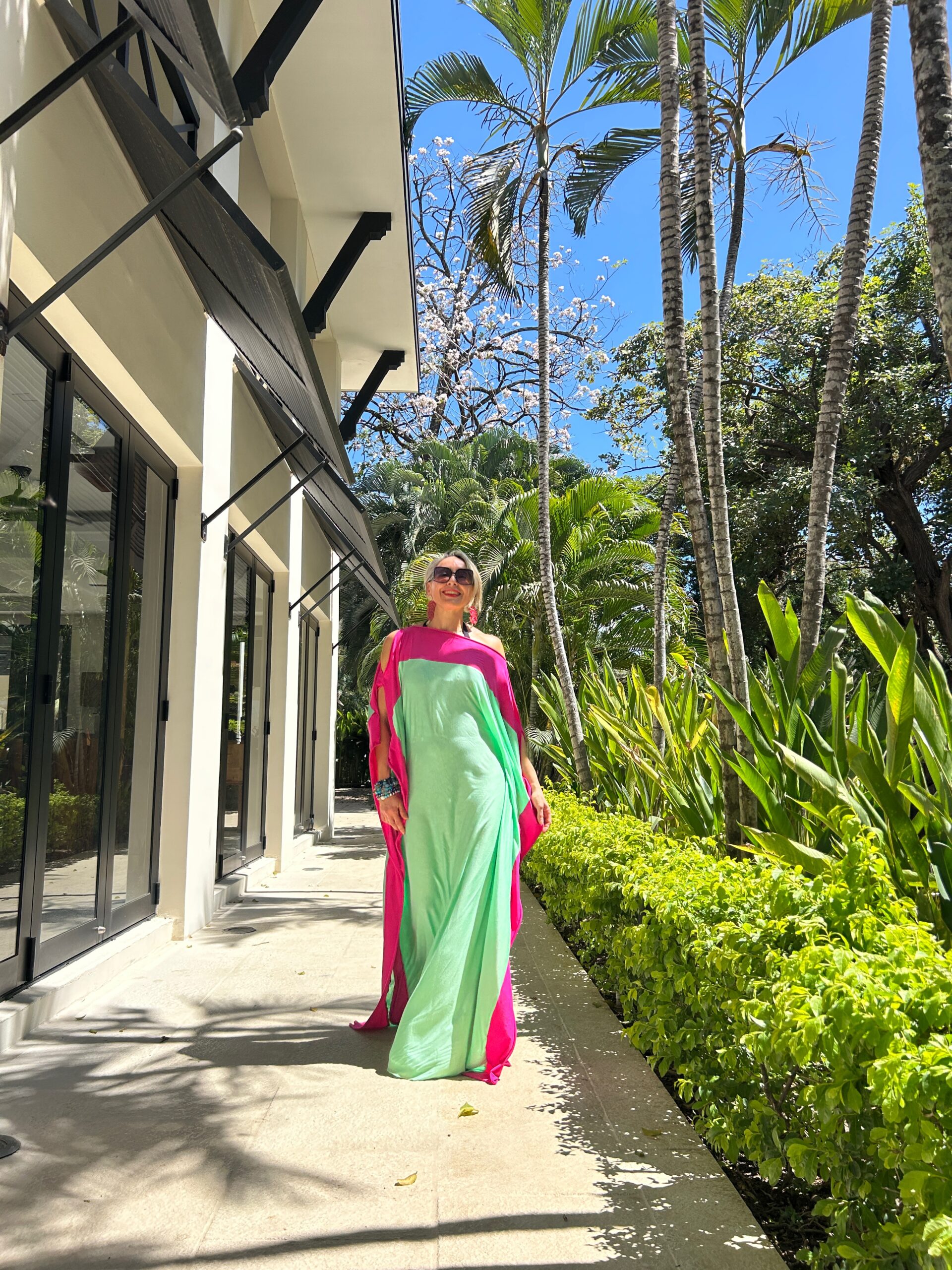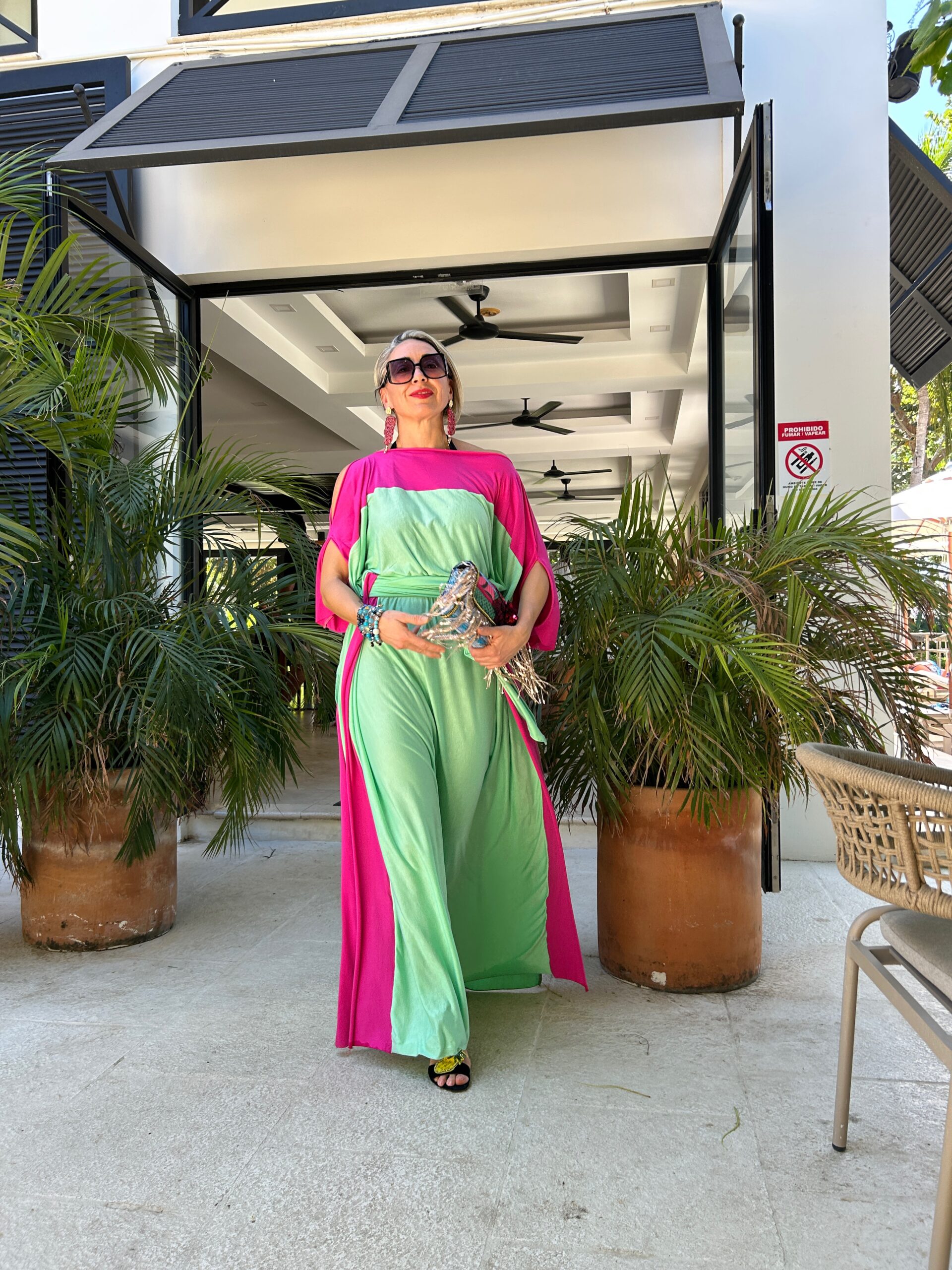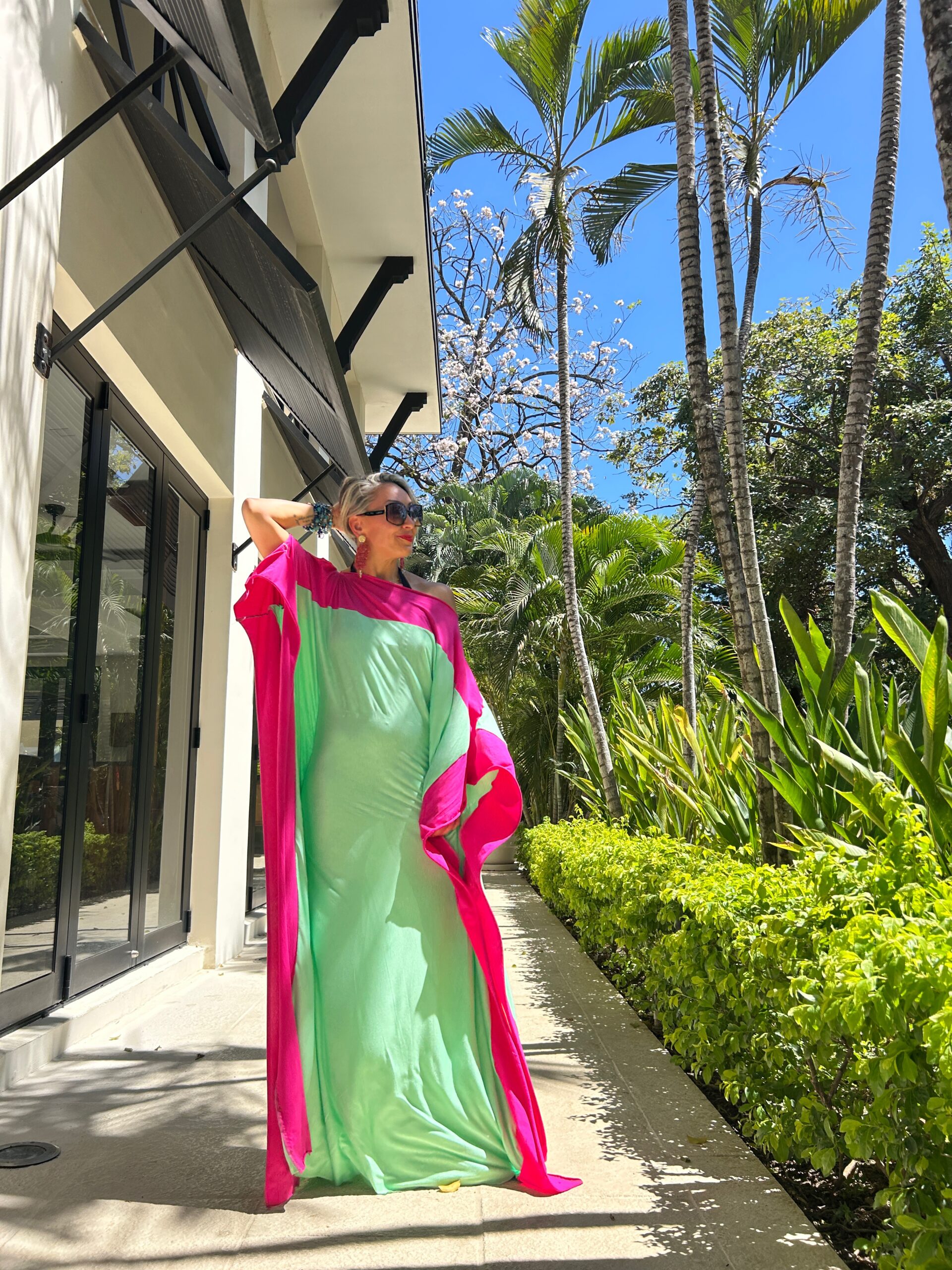 Scopri l’eleganza contemporanea di questo abito lungo bicolor fucsia e verde acqua , un modello fluido e raffinato perfetto per la stagione primavera estate. Il design ampio in stile caftano moderno unisce comfort e femminilità, rendendolo ideale per vacanze, resort, eventi all’aperto e serate estive.