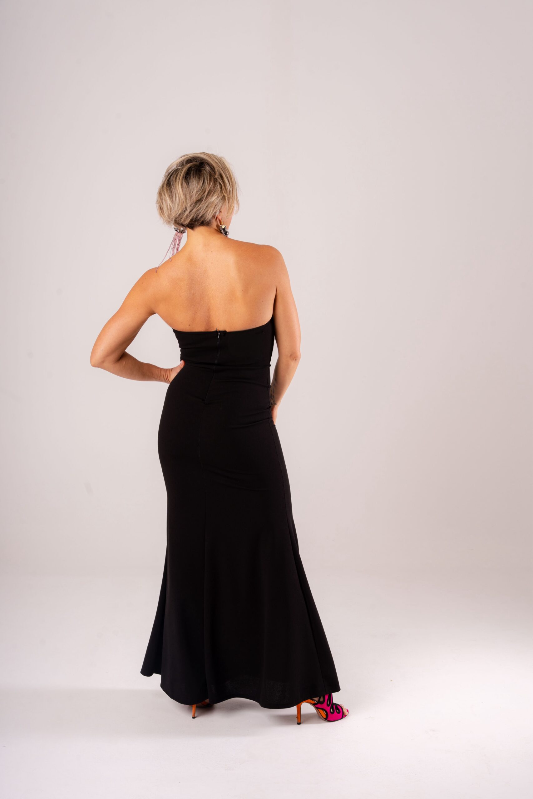 Elegante, femminile e intramontabile: questo vestito lungo nero senza spalline è il capo perfetto per chi desidera un look sofisticato e di grande impatto.