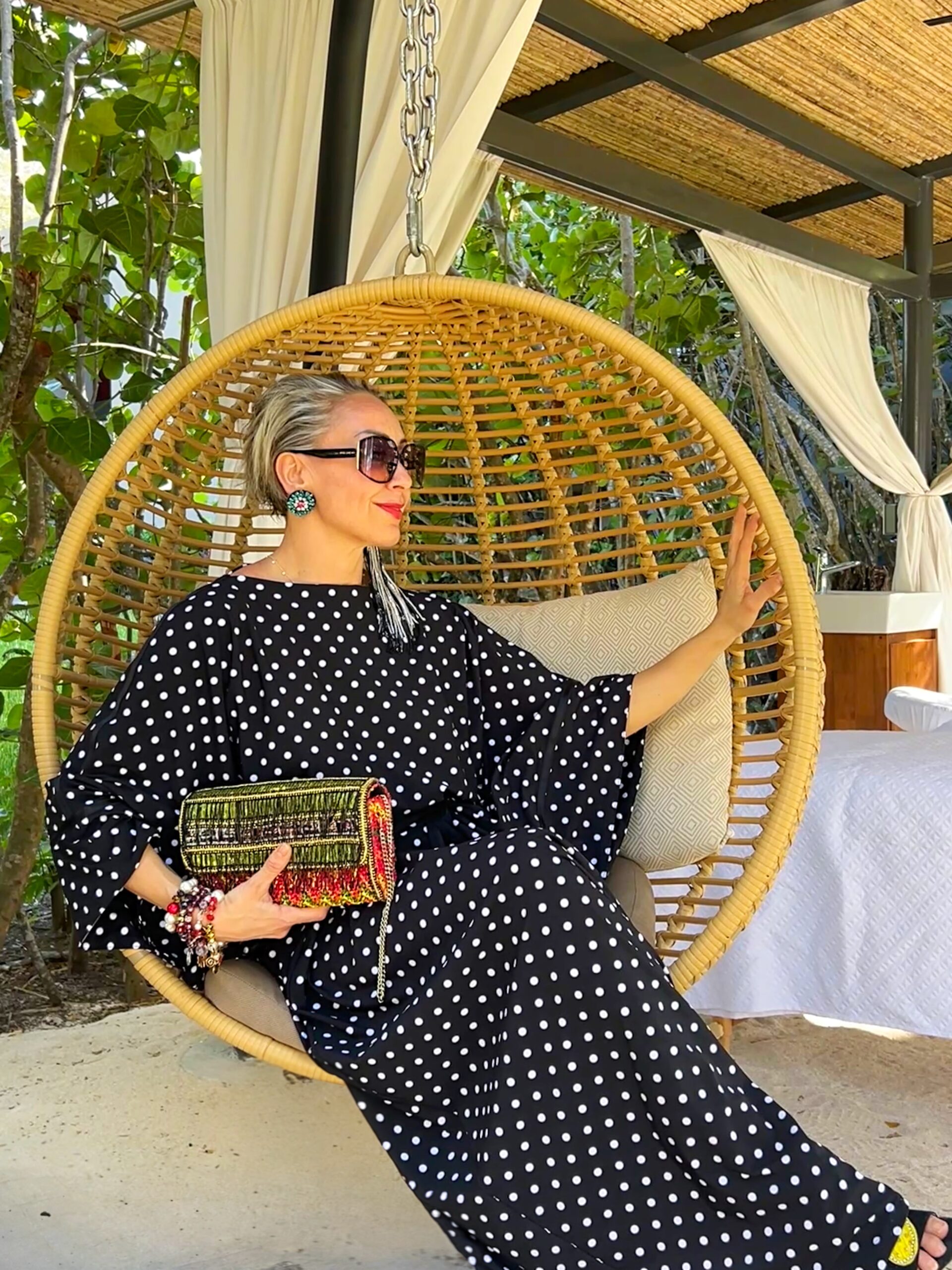 La linea fluida e la lunghezza maxi rendono questo vestito elegante a pois ideale per cerimonie, eventi, aperitivi o occasioni speciali. Facile da abbinare a sandali con tacco o accessori statement per un outfit d’impatto.
