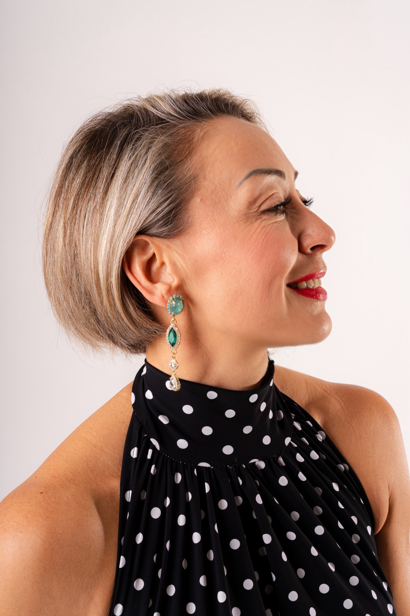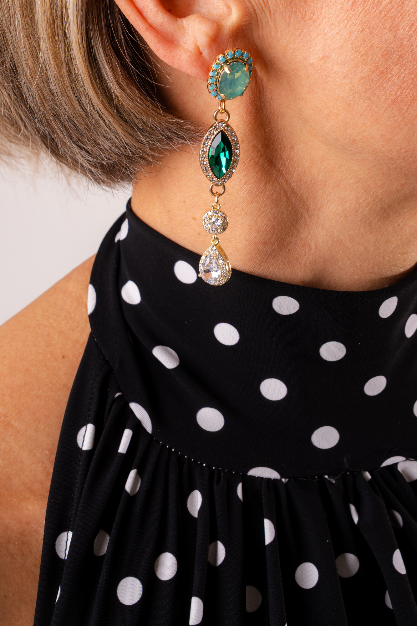 Orecchini Royal Drop con Pietre Verdi Smeraldo e Cristalli